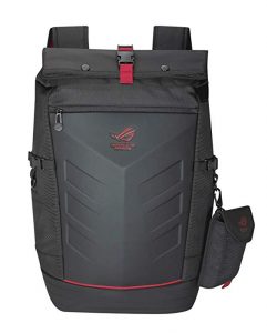 This is another great ASUS gamer backpack of black and red. It has a nice design with roll top so you can adjust it when you put a lot of items inside. In total this gamer backpack can hold capacity up to 42 litters. Interestingly, there is a rain cover which you can use to protect the bag from dirt and water. The front part of it is tough and solid that resists to bumps and shocks.